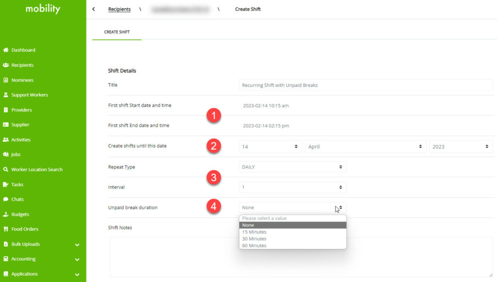 • To access this feature, a new field is now available on the Activity, Shift and Job creation screens, titled: ‘Unpaid break duration’